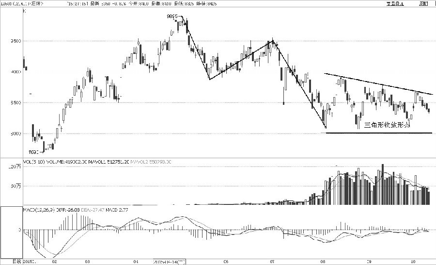245元/吨或是黄金1512合约短期的重要压力位,主要理由如下:一是黄金在今年3—6月横盘振荡,形成了密集成交区,其价格中枢就在245元/吨;二是8月25日的极高点亦触及245元/吨。从成交量上分析,黄金在8月初启动第一波大反弹,经过两次放量突破,涨幅达到12.6%。然而9月14日开始的第二波反弹突破过程中,成交量出现明显萎缩,技术上属于价升量减。