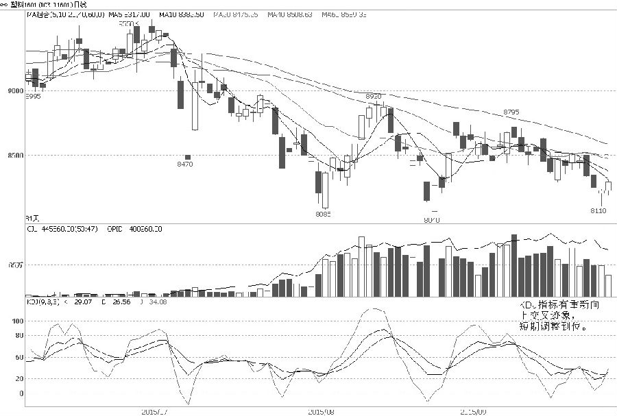 KDJ指标目前有重新向上交叉迹象,这或意味着前期的调整可能到位,短期有望展开反弹行情。总体来看,1601合约期货价格自7月以来有构造三重底的可能,后市需向上突破8600元/吨方能确认三重底形态的初步雏形。