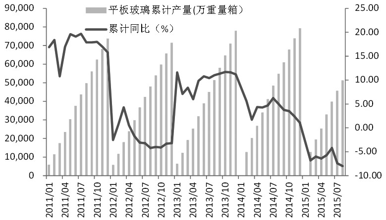 虽然平板玻璃年产量达到历史高位,但是产量增速在持续回落。2015年1—8月平板玻璃累计产量为5.12亿重箱,累计同比下降8%,这也是继今年2月后的第7次累计同比下降。尽管平板玻璃生产企业冷修或停产的成本损耗巨大,但在销售价格不能覆盖生产运行成本的情况下,一些企业不得已将生产线进行冷修。今年以来,全国共有36条生产线相继冷修,远超过往年同期冷修数量,达到空前高峰,日净减少产能7430吨,相当于10—12条中等规模的生产线总产量。据了解,原来华东地区最大的玻璃生产企业江苏华尔润集团本部目前只剩下最后一条生产线,且本月底也有停产计划,或将彻底退出玻璃原片生产行列;中国耀华玻璃集团也濒临全线停产,其他还有多家中小型玻璃生产企业已彻底停产。虽然后期国内还有新生产线投产计划,但整体来看玻璃行业去产能化已经展开,玻璃总供应量有继续回落趋势。