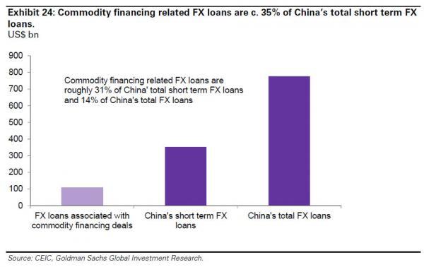 关于铜融资的量,高盛曾估计,从2012年初开始,中国短期外汇借款中约有10%是和中国铜融资交易相关的。在2013年4月,估计中国铜融资交易占了中国短期外汇贷款总额3840亿美元(存量)中的400亿美元(存量)。