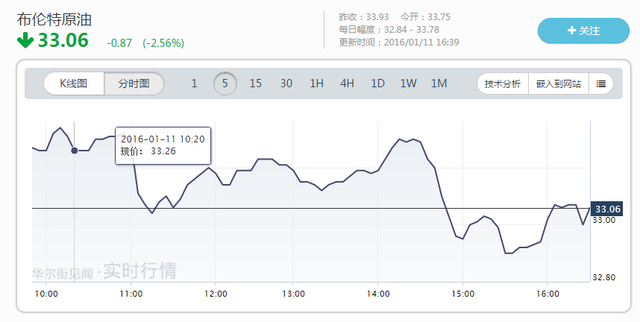 发布时间:2016-01-11 17:21:56 | 点击:5340受中国股市和人民币下跌影响,油价今日下跌超2%。同时,多家投行下调油价预期。